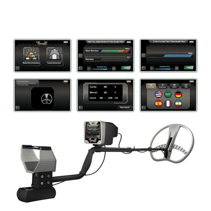 1. Metal detection system using pulse induction technology. 2. Void, cave, and archaeological tomb detection system, also based on pulse induction. 3. Depth measurement system, providing readings in centimeters.